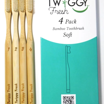 4Pack Bamboo Toothbrush. Elevate your brushing routine with our biodegradable toothbrushes made from bamboo, a renewable resource. Join the movement for a cleaner environment without compromising on dental care. A pack of 4 bamboo toothbrushes will last you a full year! These Eco-Friendly toothbrushes are wave shaped, soft and BPA Free bristles. Soft bristles help protect the gums and enamel. The handle is ergonomically designed to fit well in your hand and is 100% biodegradable.