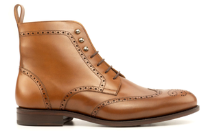 The Wesley boot is a force to be reckoned with. It is our Military Brogue style boot that sports an all box calf upper and Goodyear welt construction. The Wesley is a classic that stands the test of time. It features a beautiful brogue pattern. This boot is rugged enough for battle yet stylish enough for an upscale outing. The versatility of the Mandeaux Wesley boot is the exact reason it's an essential pair for of footwear for any man's closet.
