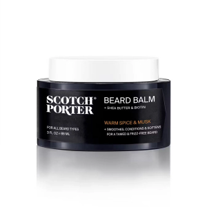 The Scotch Porter Conditioning Beard Balm for men is an effective leave-in moisturizer offers intense hydration, and conditions to care for your beard. The balm is smooth and more effective than beard gel, beard cream, beard butter or beard pomade. Our beard balm can easily tame and style your beard, promotes healthy facial hair growth, and keeps your beard shiny, soft and frizz-free. The Scotch Porter Conditioning Beard Balm is gentle on the skin and does not cause dryness, irritation or stubble on the skin due to natural ingredients including biotin liposome, water-soluble B complex vitamin, marshmallow root, and willow bark extract. These natural and clean ingredients help your facial hair looking shiny, soft and frizz-free without causing the typical greasy build-ups like other heavy beard balms. Our beard balm is cruelty-free, and free of harmful ingredients.