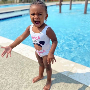 This swimsuit has it all - comfortable fit, elastic fabric, and our Black Girl Magic Zhara design. Give your baby girl a cute swimsuit for the beach, pool or even your backyard.