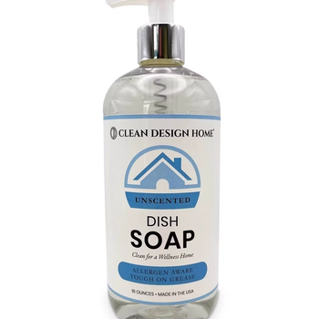 Our CLEAN DESIGN HOME® dish soap is an allergen aware solution for keeping surfaces clean and sparkling. Our formula is tough on grease with our plant-based formula. Perfect for kitchens, nurseries and cleaning child toys. Tested by people, not on animals.