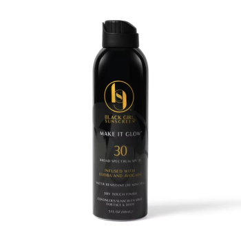 Our lightweight, continuous sunscreen spray applies to the body evenly leaving a layer of sun protection from harmful UVA/UVB rays. Infused with Glycerin, Jojoba, and Avocado to help moisturize your skin, Make It Glow™ leaves all skin tones and types with a radiant glow for on-the-go.