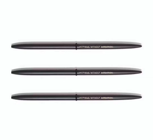 This pen is the perfect companions to your Aya Paper Co. Journals! Choose between the Black Intention Pen or Gold Manifestation Pen—or grab both! Black Pen reads: NOTHING WITHOUT INTENTION Gold Pen reads: LESS PLANNING, MORE MANIFESTING These sleek ballpoint pens write as smooth as they look. The long, lean shape and weighty feel allows the pen to sit comfortably in your hand. As if the design isn't enough reason to love these pens, they're also refillable! Buy Refills Here Black ink 0.5 mm tip ballpoint 6.25" x .25" (15.9 cm x 0.6 cm)