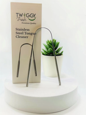 Clean your tongue with this premium, stainless steel tongue scraper. Get rid of and eliminate bad breath. Rust proof, 100% stainless steel. The "U" shape design is flexible enough to twist and turn scrapping all the corners of your tongue.