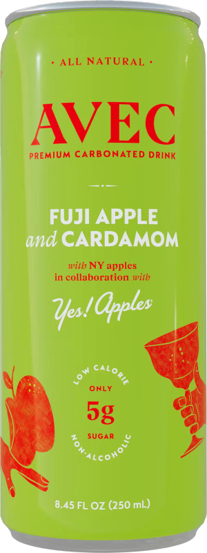 AVEC Fuji Apple & Cardamom is a delicious but low sugar non-alcoholic sparkling beverage that tastes great by itself or when mixed with vodka or whiskey. Made from the finest Fuji Apples from Upstate New York & incredible spices & botanicals from around the world (cardamom, lemon, tarragon, orange blossom, lemon verbena & vanilla) to create a crisp, herbaceous, & low sugar take on sparkling apple cider.