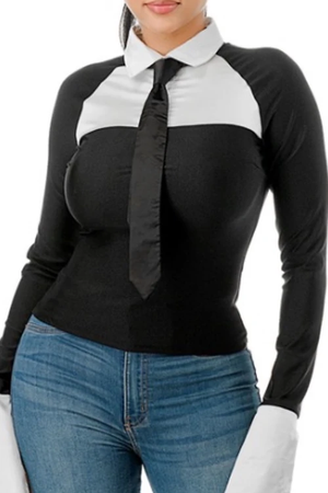 Sophisticated yet effortlessly chic, the Black & White Necktie Top is a wardrobe essential for those who appreciate classic style with a contemporary twist. Featuring a bold black-and-white contrast, this top is designed with a stylish necktie detail that can be worn in a bow or left loose for a more relaxed look. Crafted from a soft, lightweight fabric, it offers a flattering fit that transitions seamlessly from office meetings to evening outings. Pair it with tailored trousers for a polished ensemble or style it with denim for a smart-casual vibe. Versatile, elegant, and undeniably striking—this top is a statement piece for any occasion.