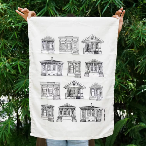 This is a natural cotton towel that has been screen-printed with non-toxic ink. It features an original illustration and this decorative towel would look great hanging on your kitchen cabinet or oven door. They also make great housewarming gifts.