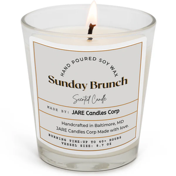 Meet our superstar candle 'Sunday Brunch' which represents our beginning and effortlessly brings you back to your favorite Sundays filled with sparkling crystal flutes of Mimosa. Our top choice candle represents both our premiere and flagship favorite as well as a citrus burst which enhances the luxury of your favorite Sunday brunch beverage. Fragrance Notes: Top Notes: Champagne, Grapefruit, Lemon Verbena Middle Notes: Mandarin, Mimosa, Green Floral, Coconut Bottom Notes: Amber, Benzoin The invigorating aroma of citrus fills the air which recalls those joyful times spent enjoying a Mimosa's refreshing tang. The 'Sunday Brunch' candle transcends its basic function to create a sensory experience that leads to both conversation and sales. Drink-flavored candles dominate market sales while 'Sunday Brunch' stands out by captivating consumers with its irresistible appeal.